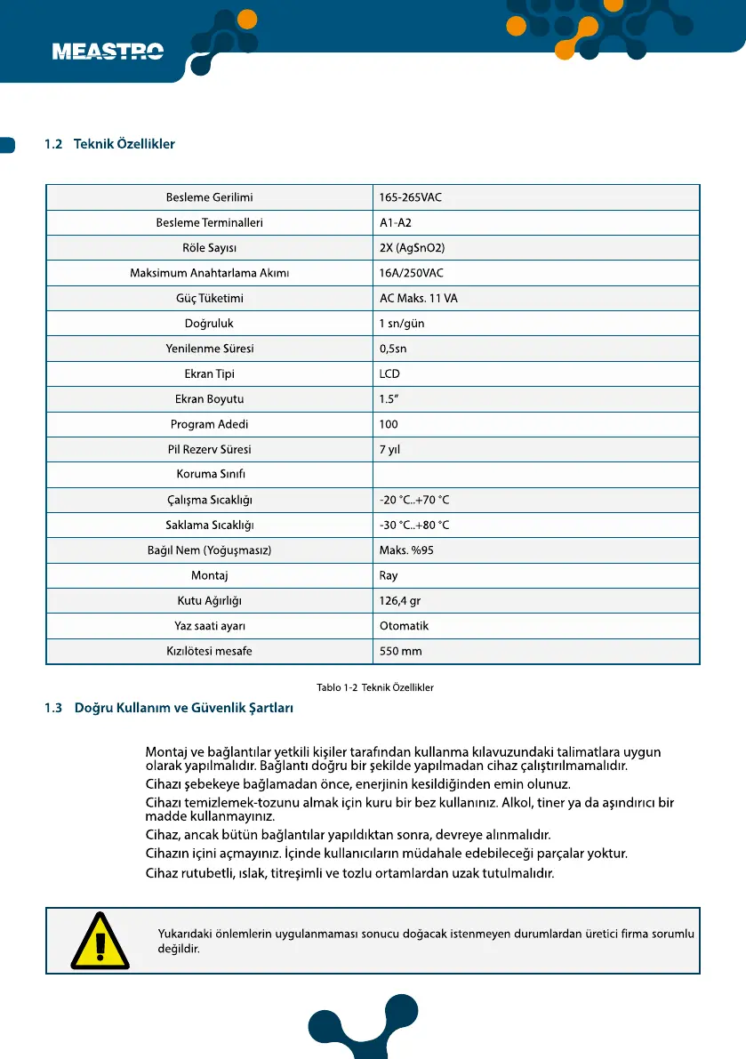 Klemsan Meastro-R - Teknik Özellikler; Doğru KullanıM Ve Güvenlik Şartları