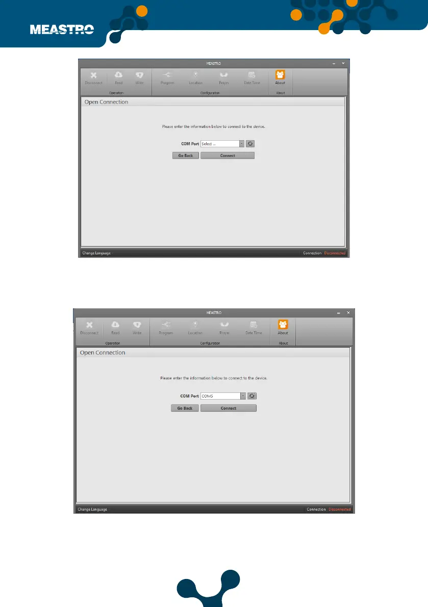 the ’Refresh’ button, the list will be updated by clicking on it. After ‘COM X’ is selected, click the