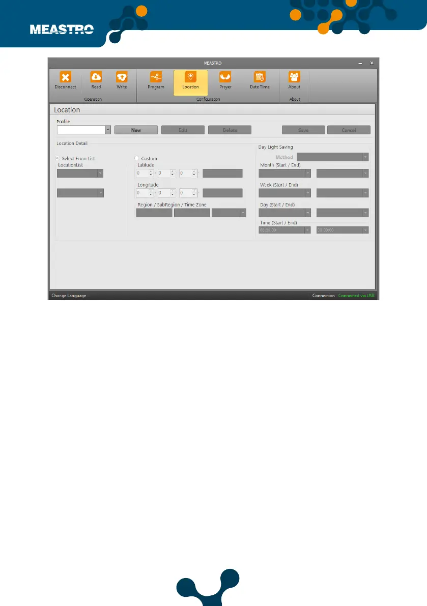 On the Location tab, the desired location settings are saved to the device, written to Meatro-R