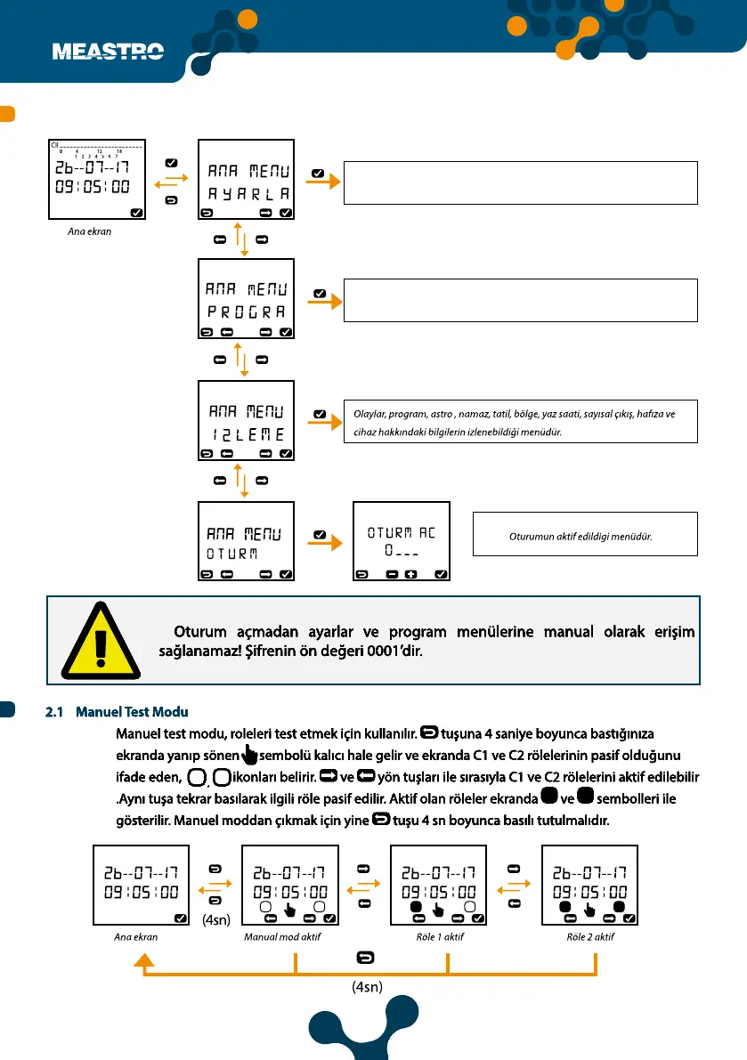 sembolü kalıcı hale gelr ve ekranda C1 ve C2 rölelernn pasf olduğunu