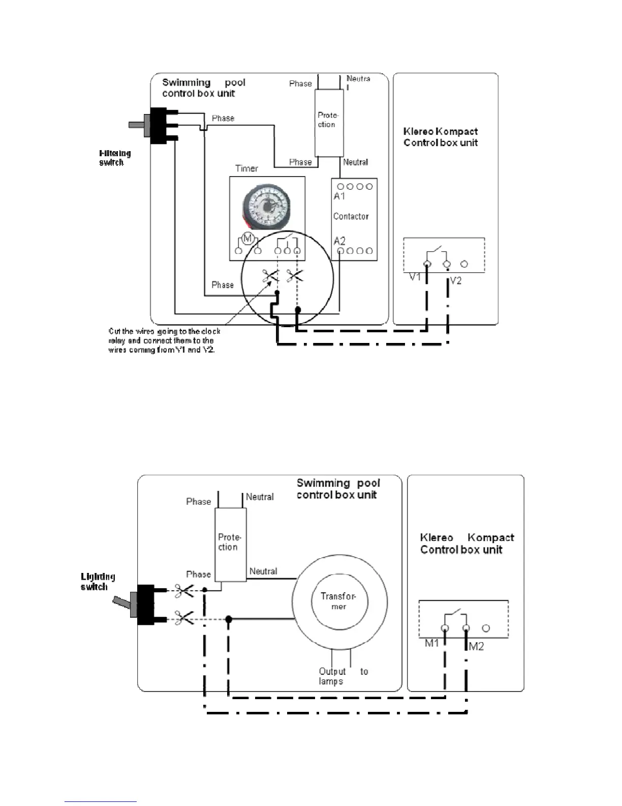 Figure 29. Example of connection to an existing swimming pool control box unit.