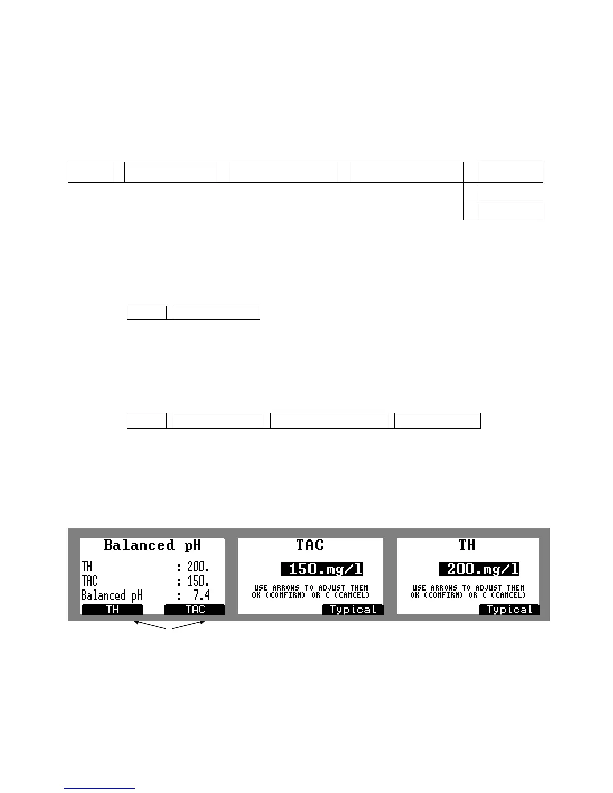 This menu indicates the balanced pH by measuring and entering the TAS (alkalinity) and TH