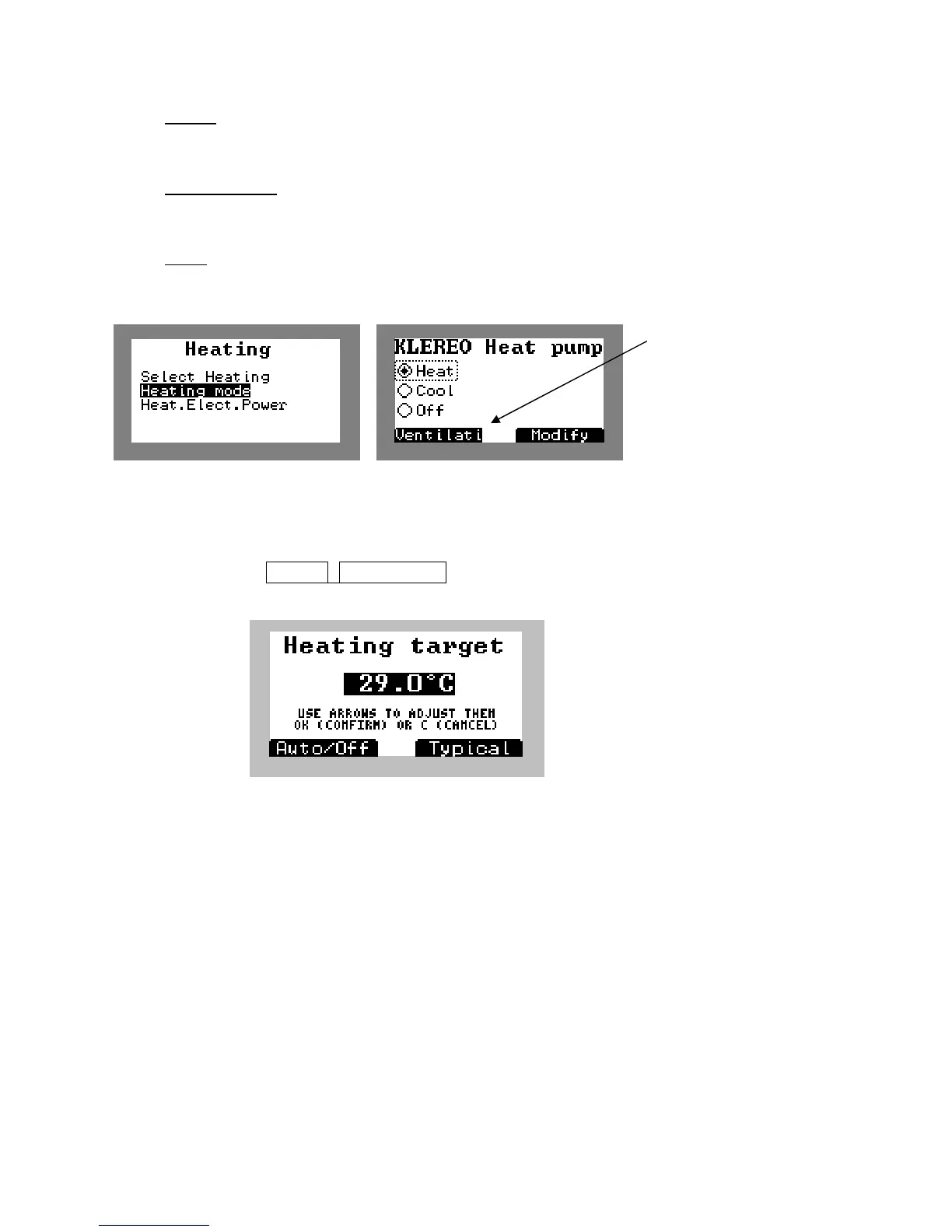 The « heating mode » menu will only appear when Klereo Therm has been selected. With