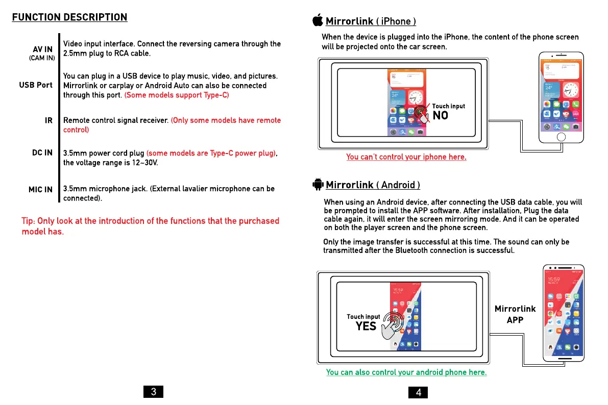 KLEVA 113266 - Function Descriptions; Mirrorlink for iPhone; Mirrorlink for Android