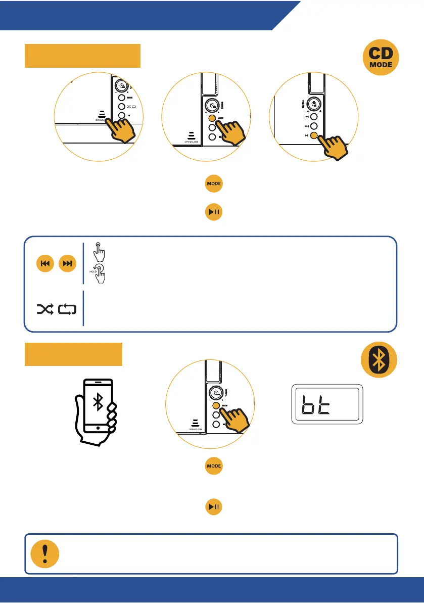 Paso 2: pulsa MODE y selecciona el modo BT.