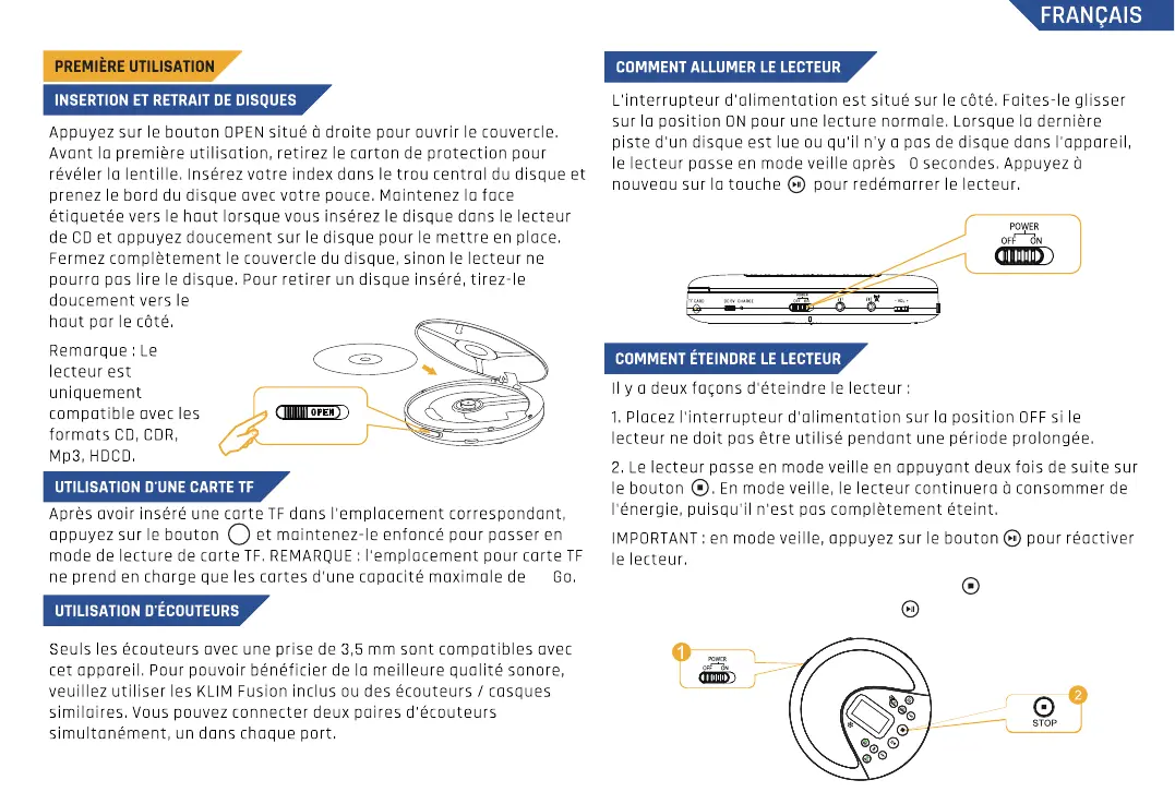 Note : En mode FM, un appui long sur le bouton éteindra le lecteur CD.