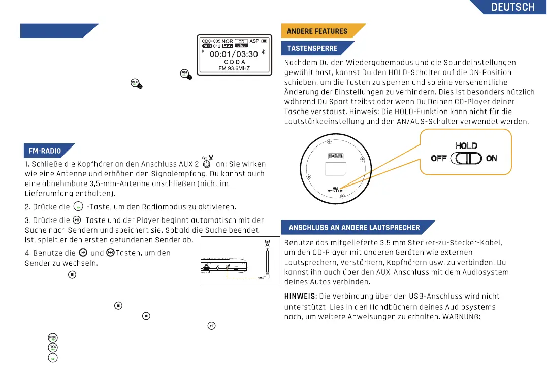 um "FM OFF" anzuzeigen. Drücke erneut, um
