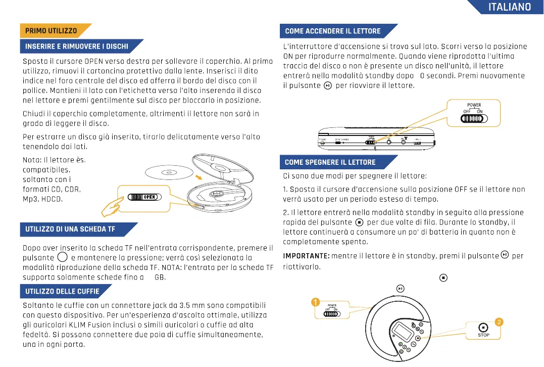 Nota: in modalità FM, premere a lungo il tasto per spegnere il lettore.