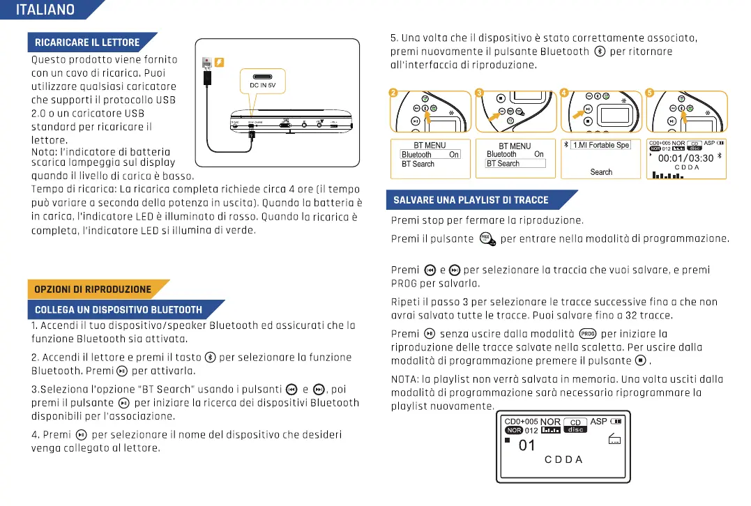 inoltre visualizzata l'icona della batteria in carica mentre il lettore è in fase