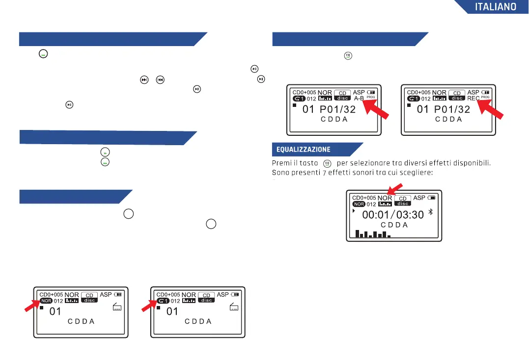 riproduzione da CD e riproduzione da Scheda SD/TF. Premi per cambiare