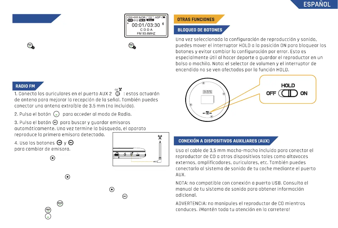 botón una vez para mostrar “FM OFF”. Pulsa el botón de nuevo para