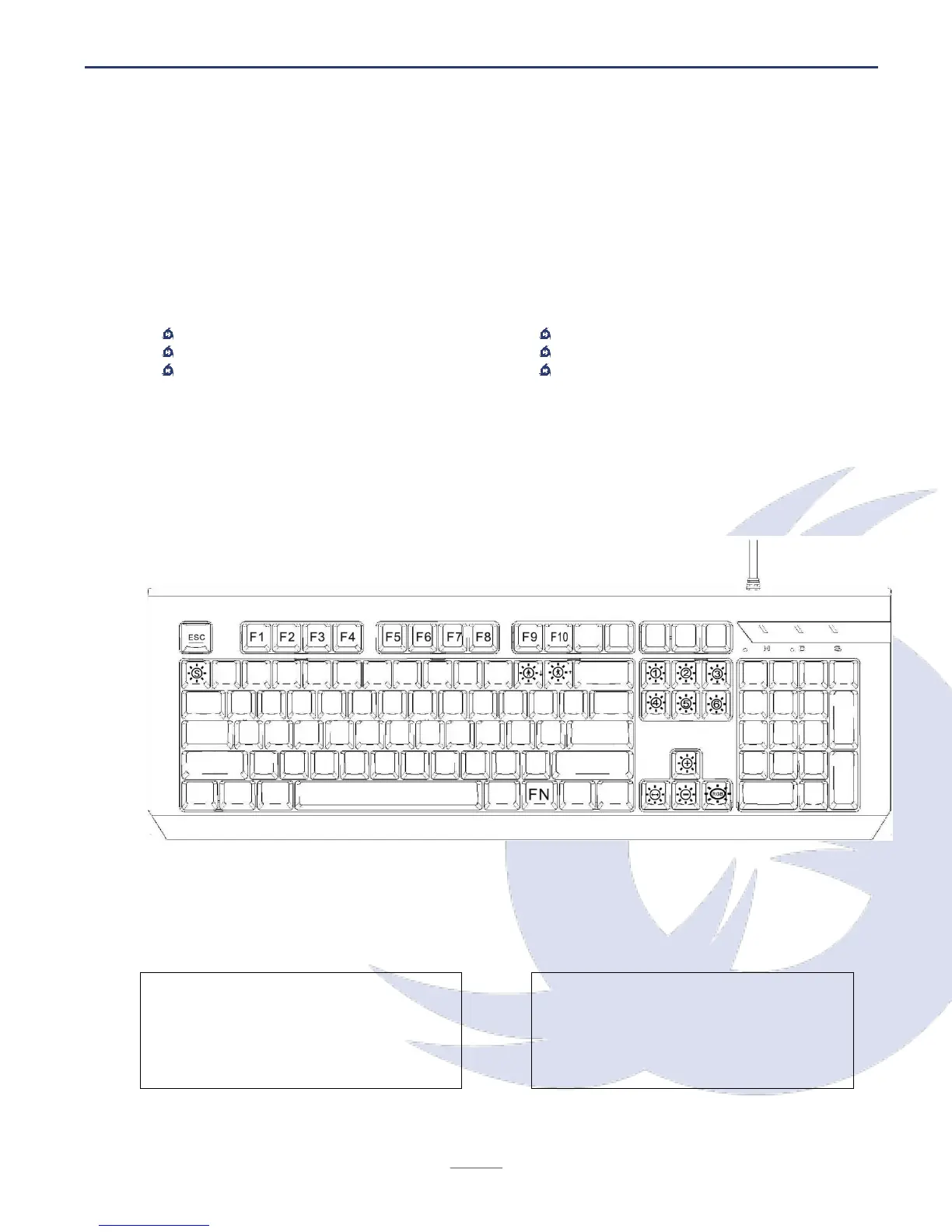 The diagram below shows the special keys used to customize the keyboard's lighting effects,