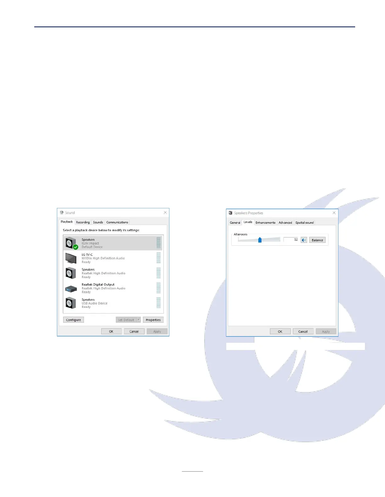 3. Next, click on Properties. Under the Levels tab, adjust the output volume and verify