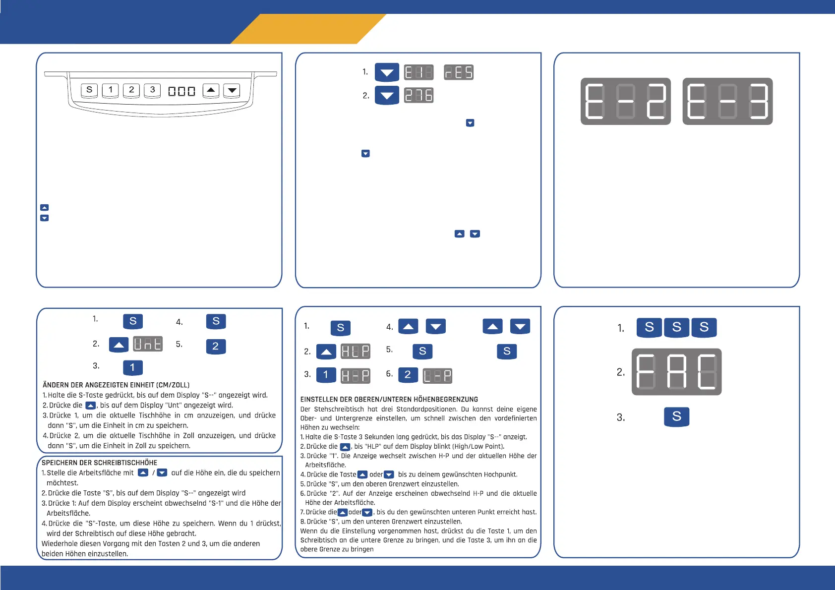 Tipp: Die aktuelle Tischhöhe wird auf dem Display standardmäßig in Zoll