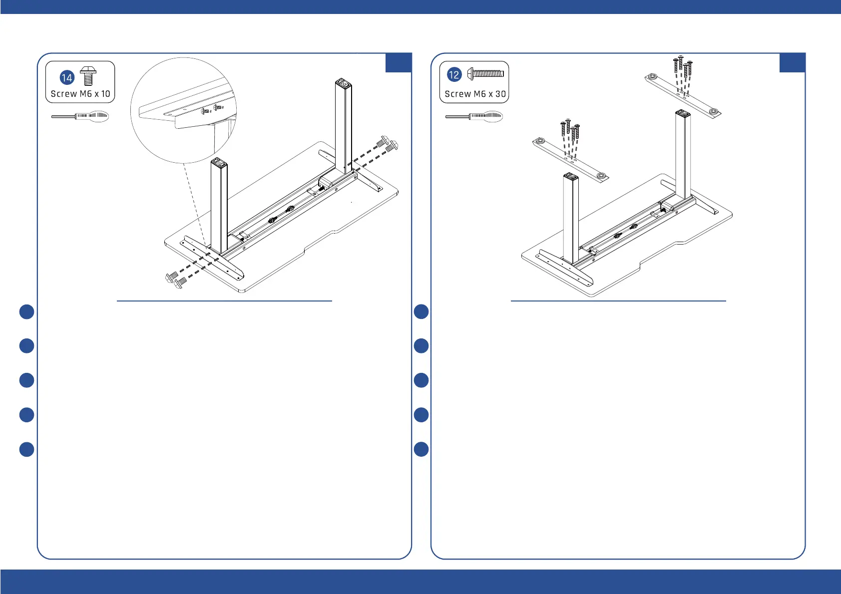 Place the two bases on top of the legs and align the holes. Fasten the screws and check