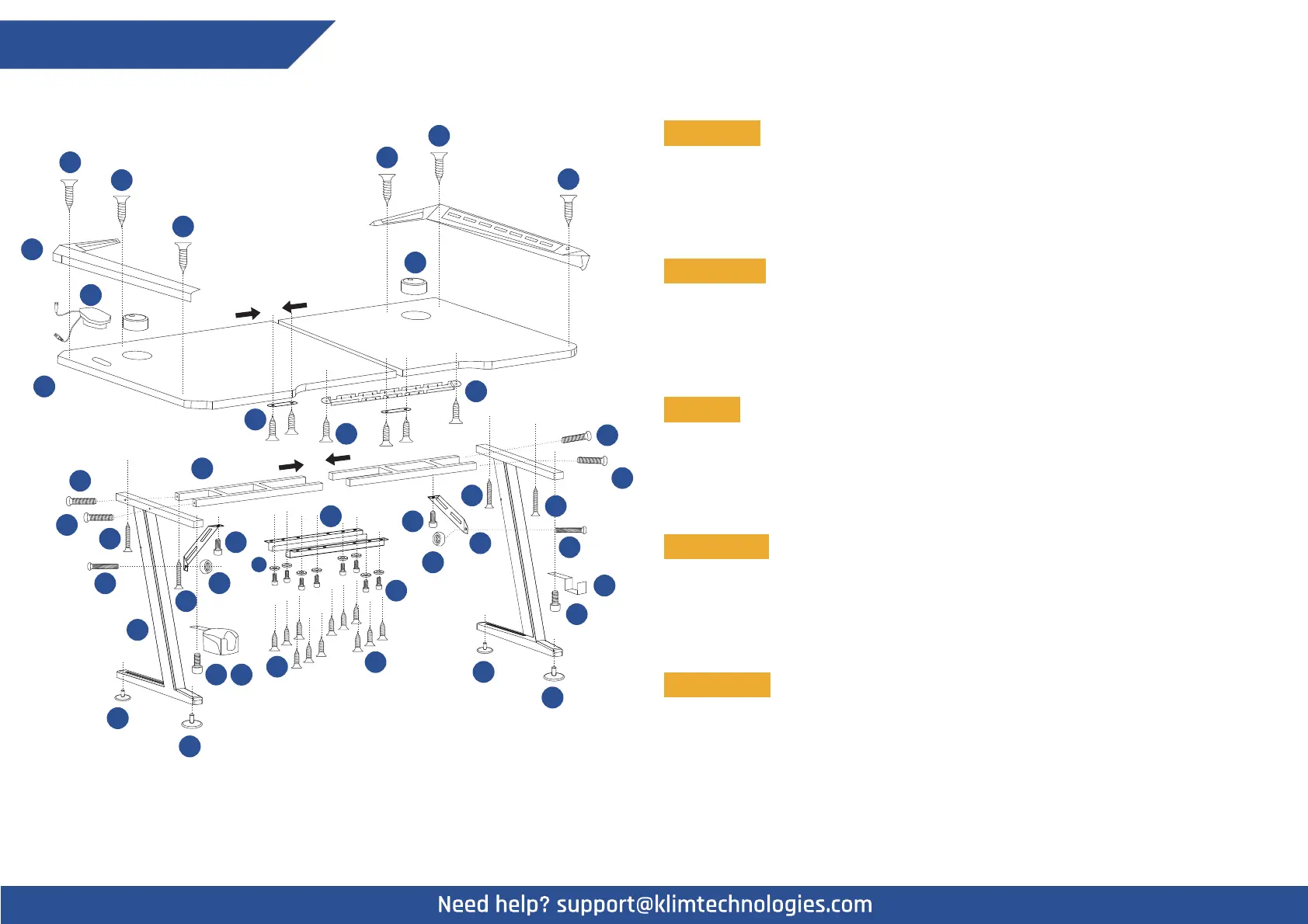 IMPORTANT: assemble the desk on a hard, flat surface. It is placed upside