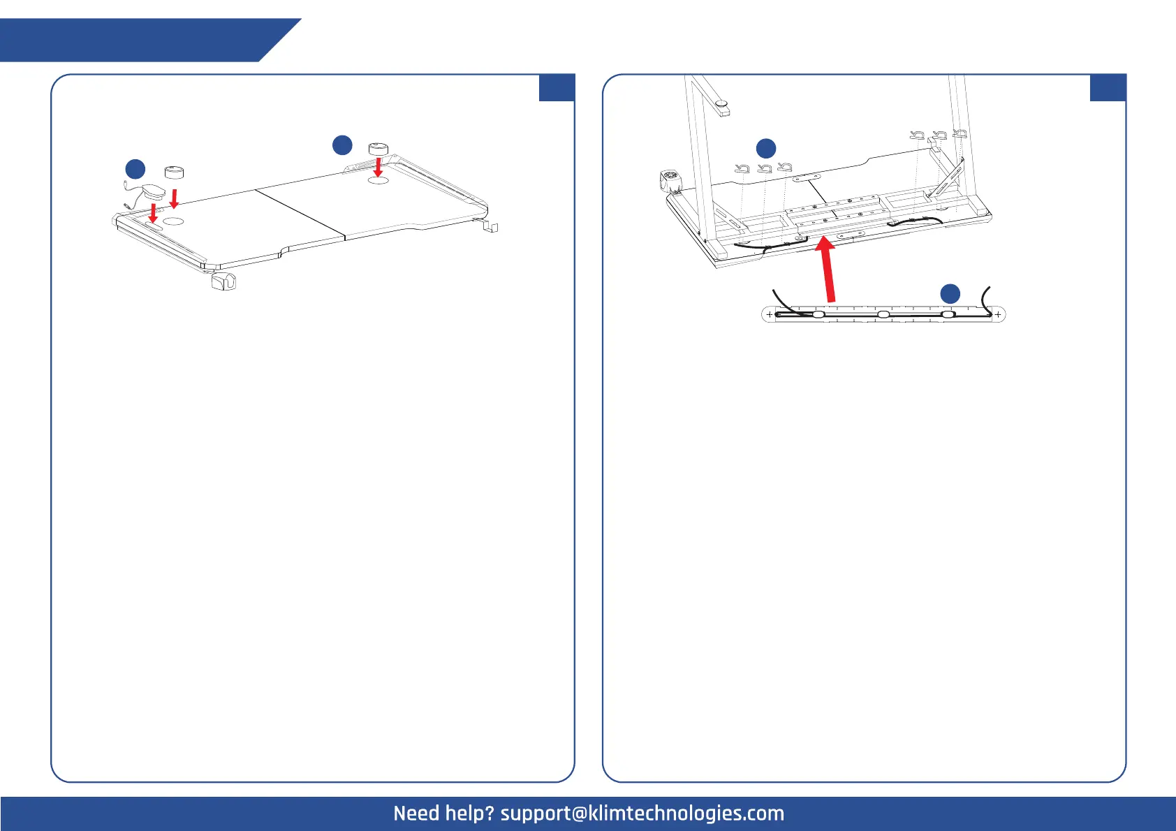 Placez les deux caches circulaires passe-câble dans leurs emplacements respectifs. Placez