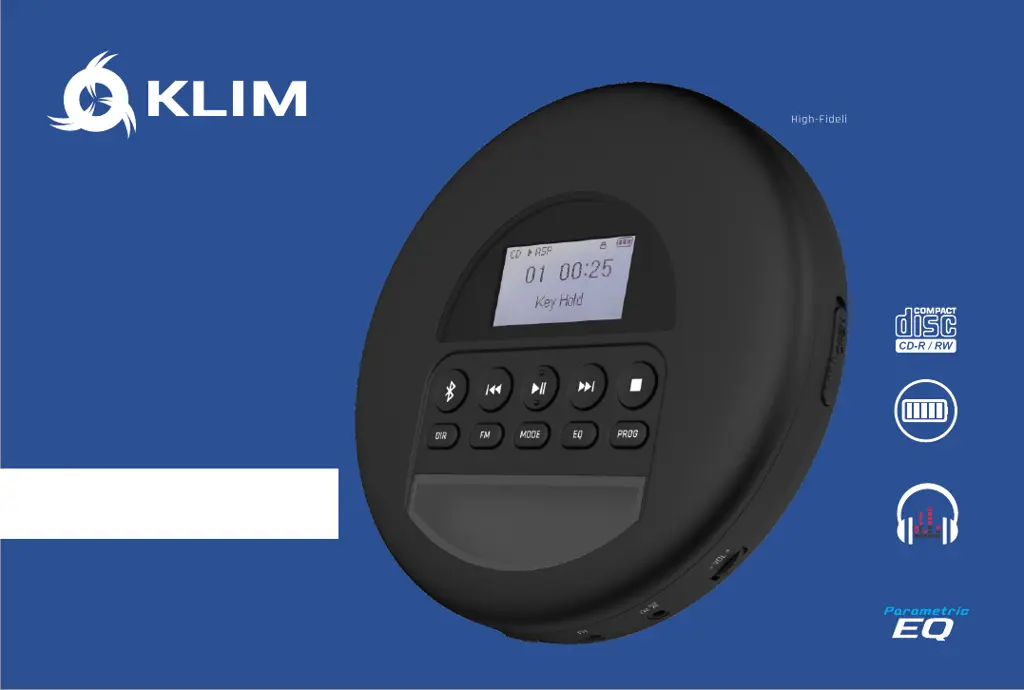 If your KLIM CD Player isn't turning on, first ensure the power switch is in the ON position. Also, check that the HOLD button on the back is in the OFF position, as this locks the buttons. If it still doesn't turn on, charge the CD player. If none of these steps work, the player may be damaged, and you should seek professional repair assistance.