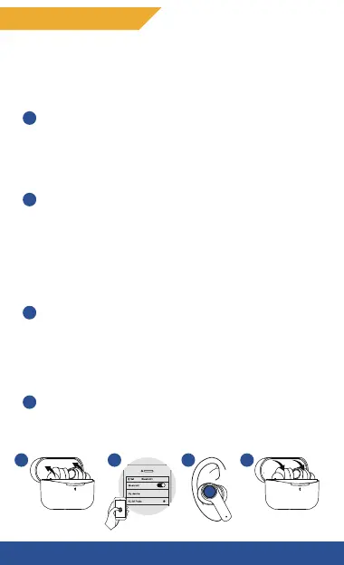 1) Open the case, the earphones will turn on