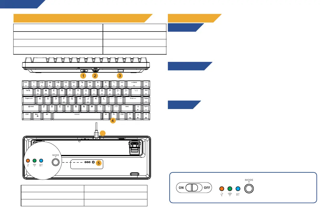 Utilizzo Bluetooth: Premi il pulsante MODE sul fondo della tastiera per