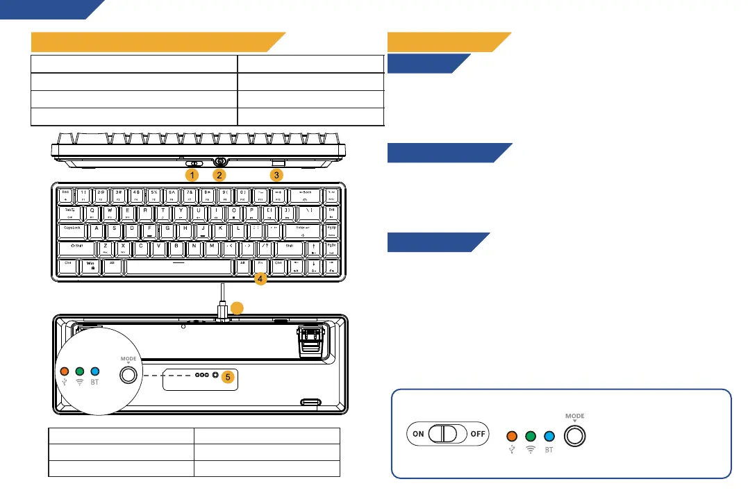 Bluetooth mode: Press the mode switch underneath the keyboard