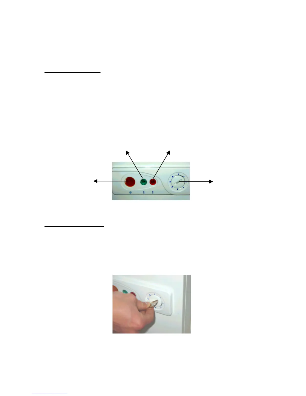 Un voyant vert (au milieu) ; il indique que le courant électrique arrive au congélateur et
