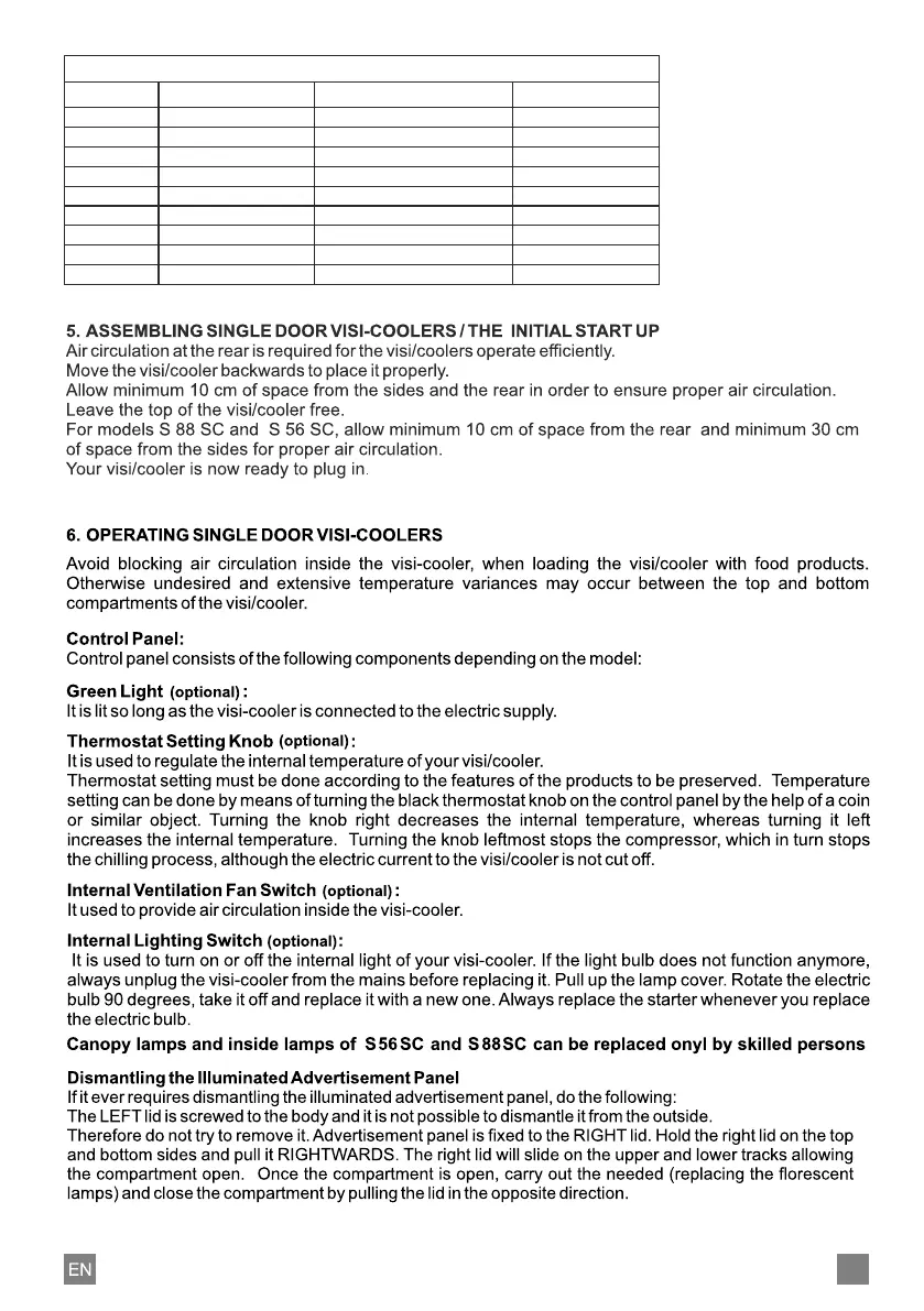 Klimasan D 372 SC M4C STD - Assembly and Initial Start-up; Dismantling Illuminated Advertisement Panel; Operating the Visi-Cooler