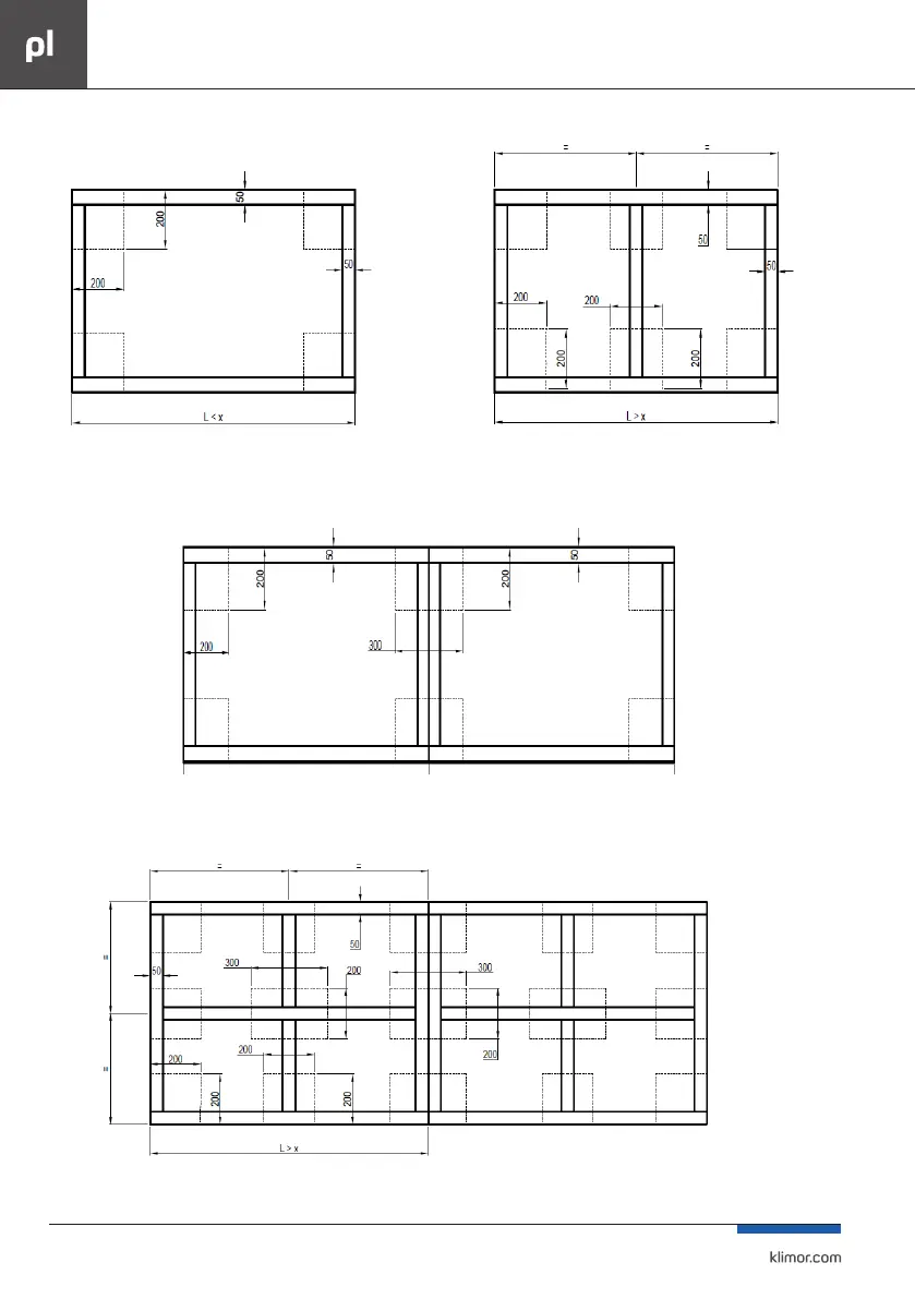 c) dla central monoblokowych oraz pojedynczych bloków z ramą z prolu ceowego podparcie 200x200mm wymagane jest na zewnętrznych