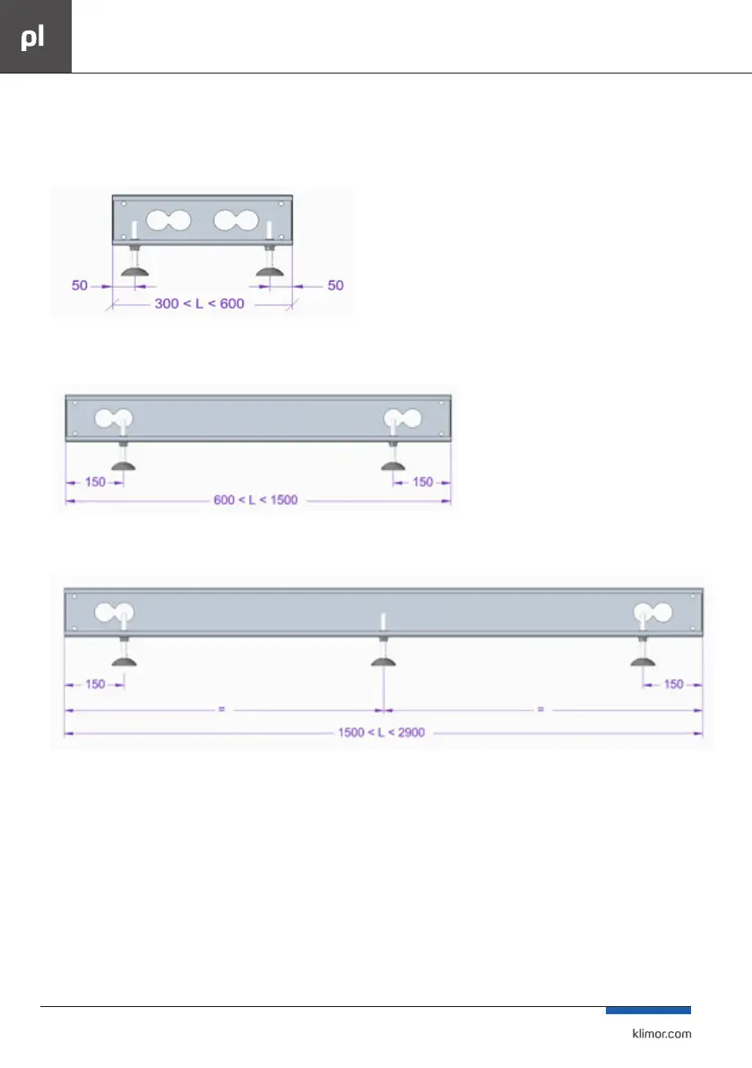 Cztery stopy regulacyjne oddalone od krawędzi sekcji o 150mm