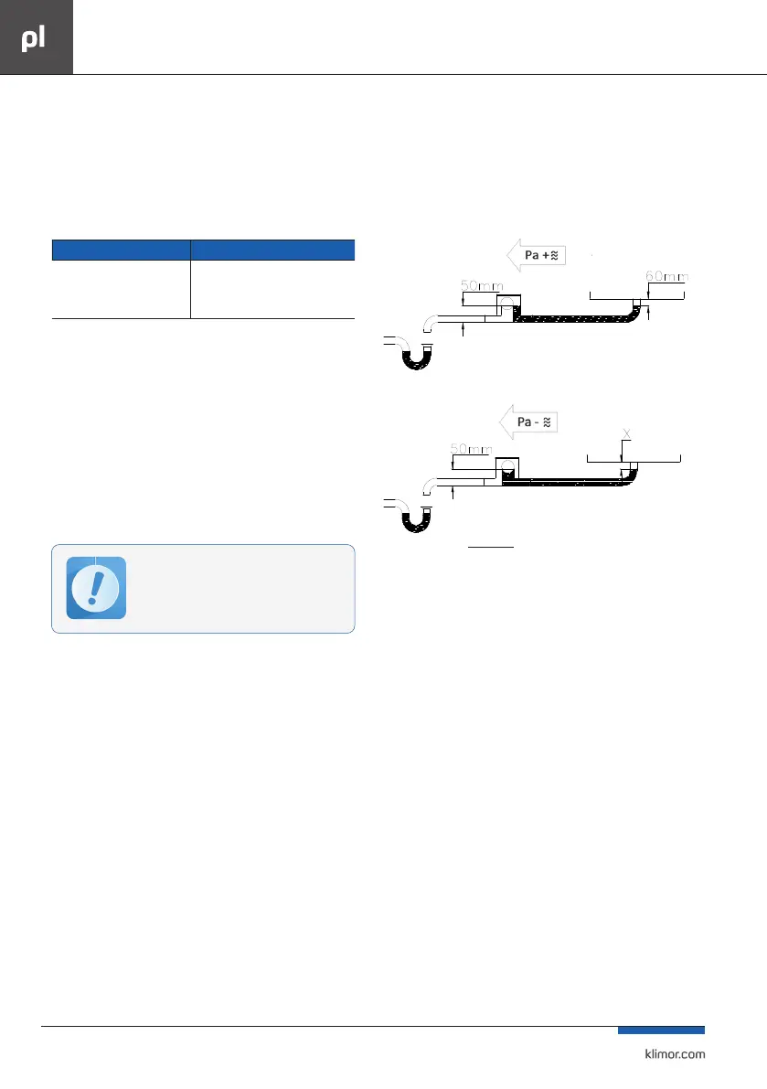 jące prawidłowy odpływ skroplin i zapobiegające podsysa-