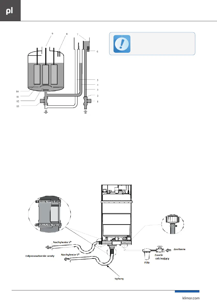 2. Przewody odprowadzenia wody z cylindra muszą być od-