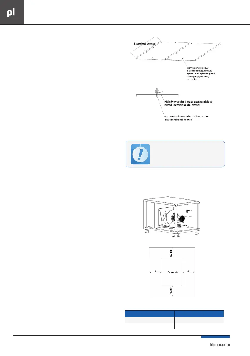 Przy montażu zadaszenia centrali nie można