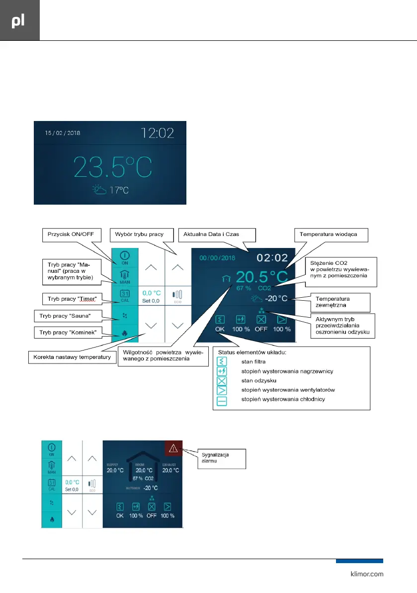 Rys. Nr 22 Oznaczenia ikon na ekranie panelu.