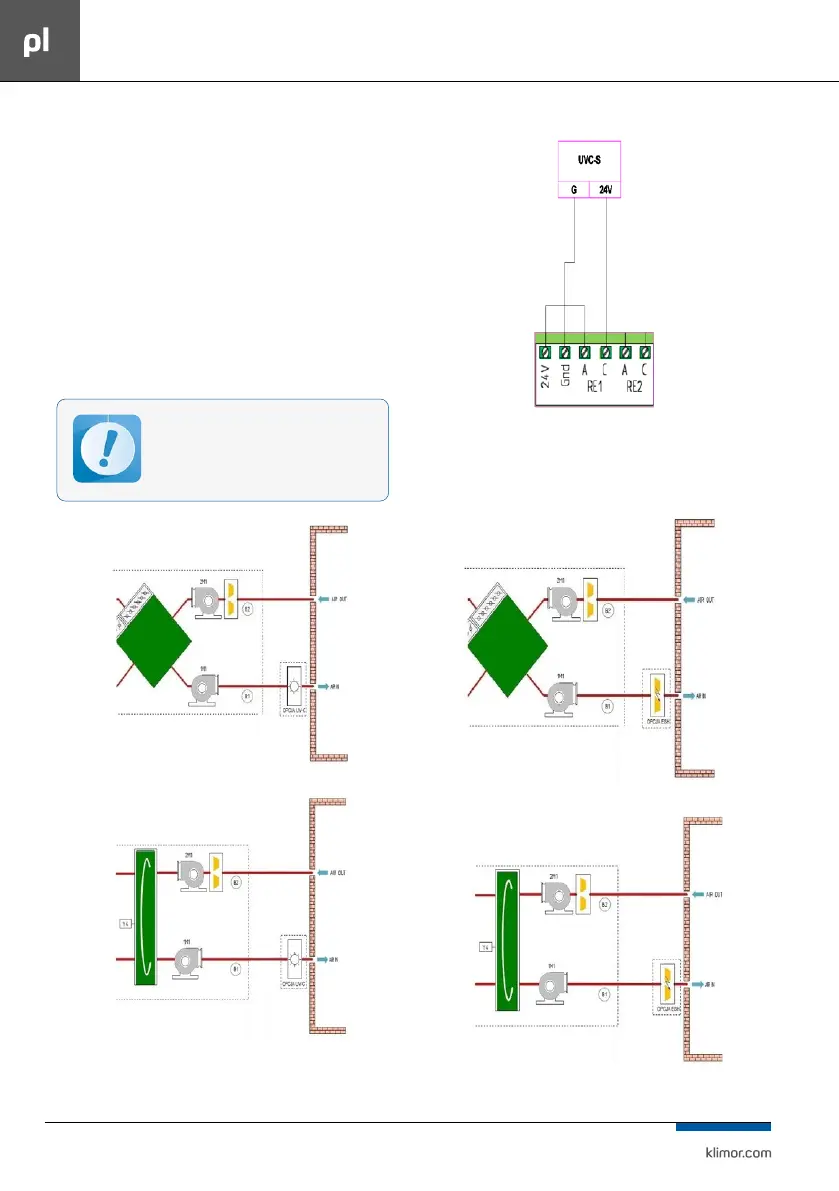 Sekcje kanałową Lamp UV-C należy podłączyć pod odręb-