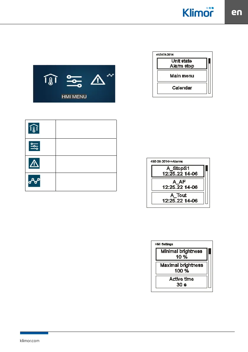 tain the main pages, the HMI menu is displayed by default