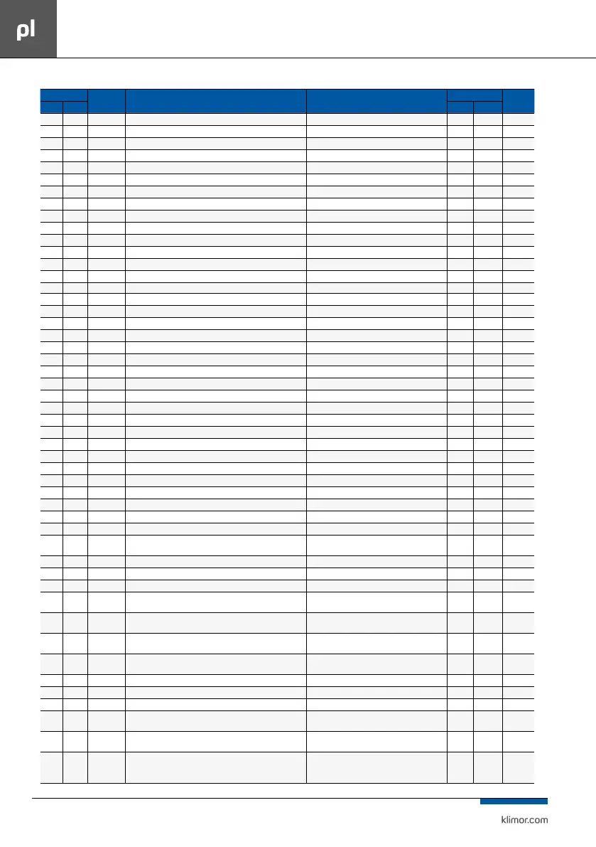120 240 KpRec Wzmocnienie regulatora zabezpieczającego przed oszronieniem odzysku 1 = 256 (22 = 22*256 = 5632 = 0x1600) AV Register R/W