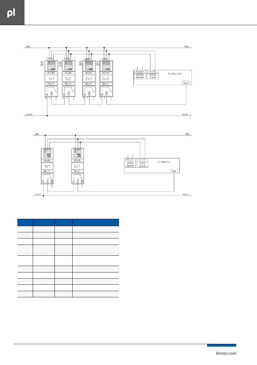 10.5 Komunikacja RS485 Slave, Modbus RTU isposób podłączenia zsilnikami EBM
