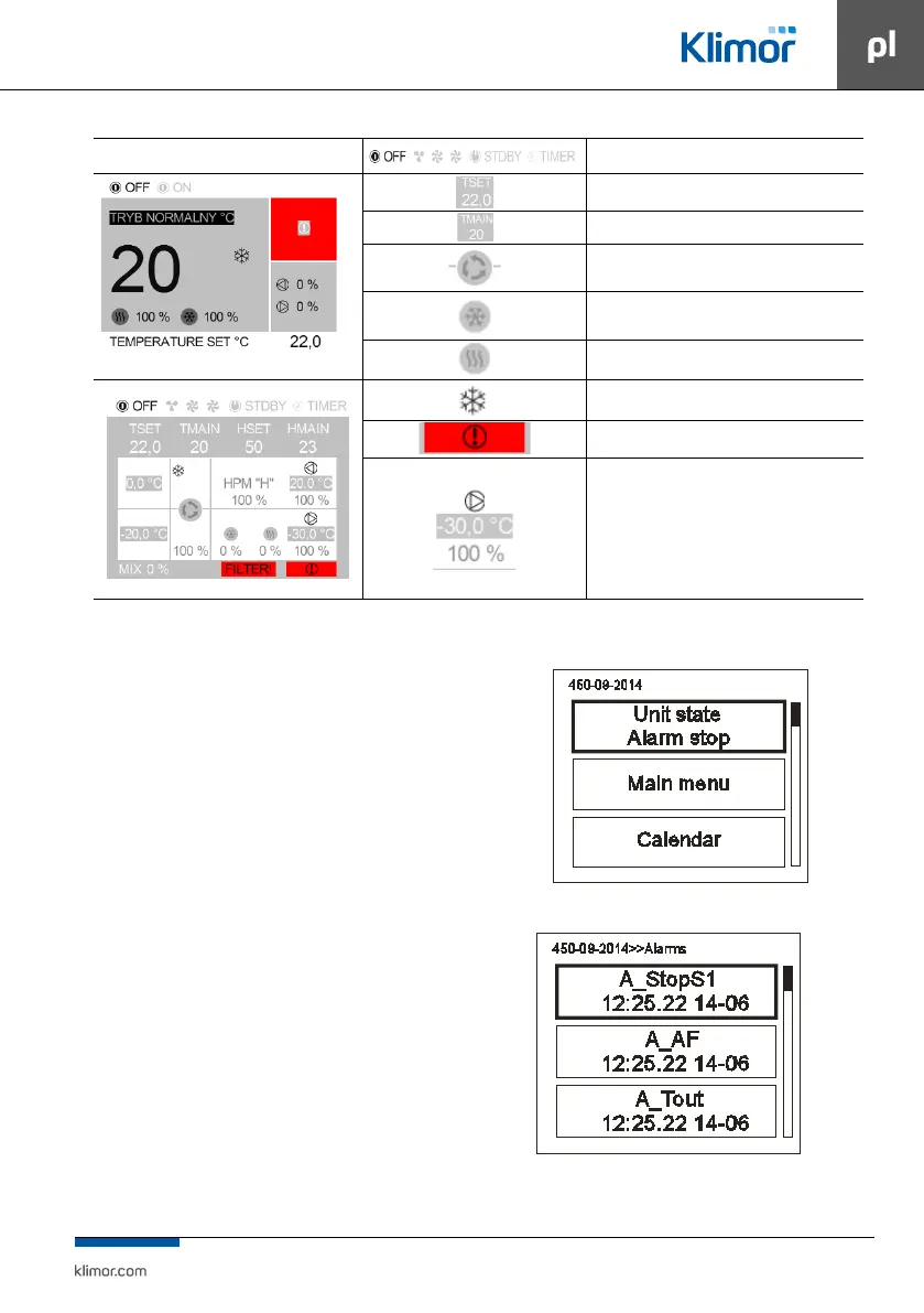 rem tła menu HMI. Aby sprawdzić stan alarmów należy