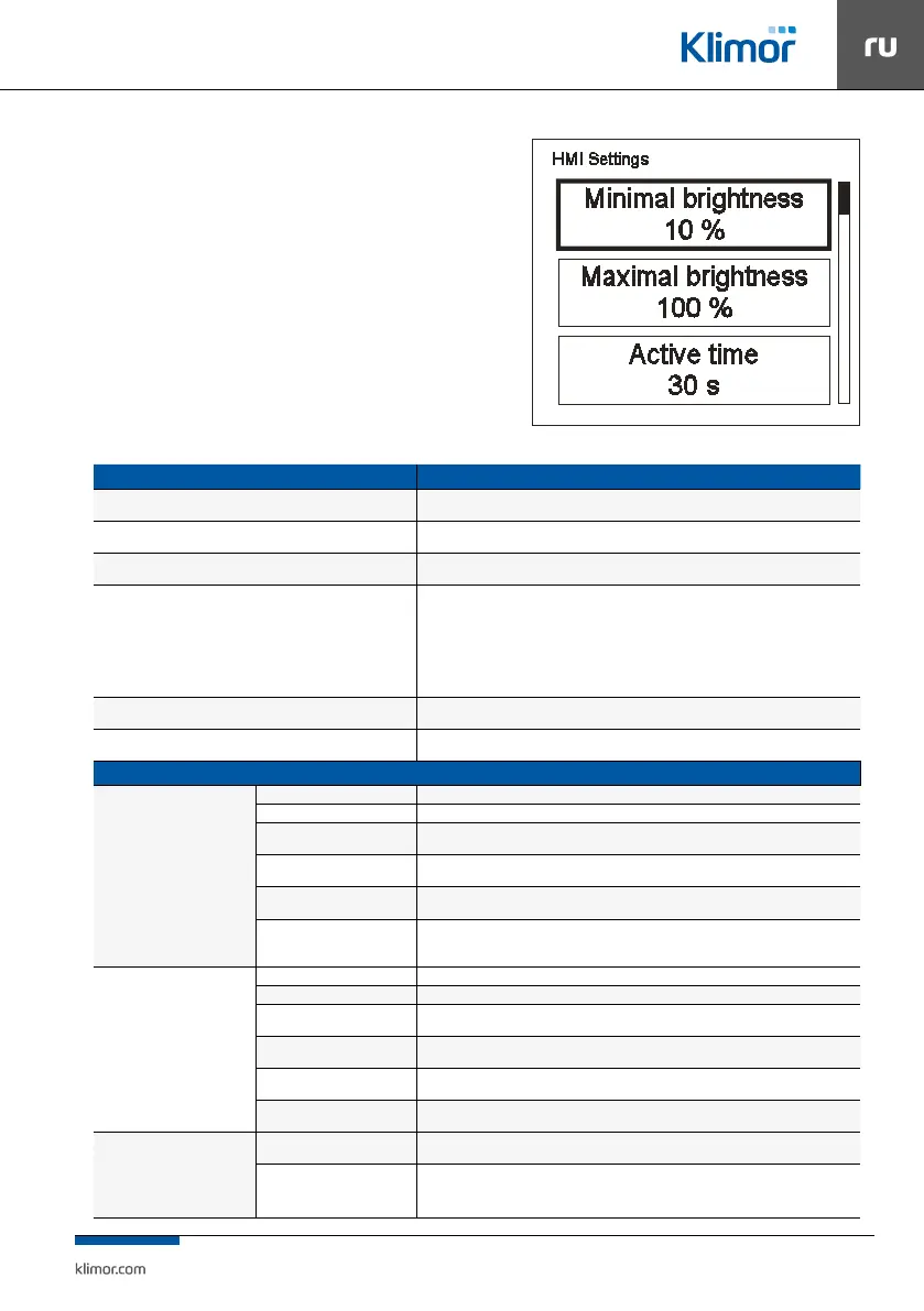 Мощность подсветки, когда HMI находится в режиме активности