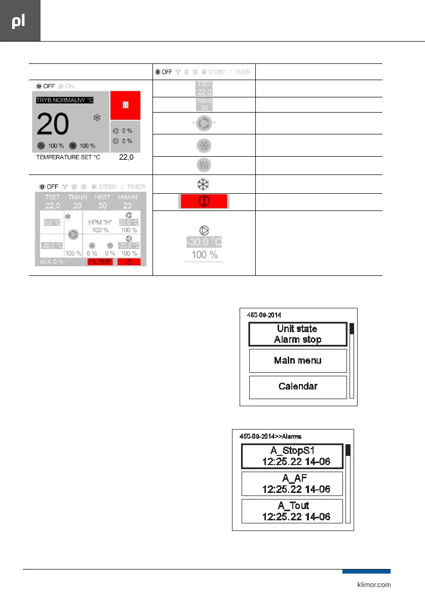 menu HMI. Aby sprawdzić stan alarmów należy przejść do