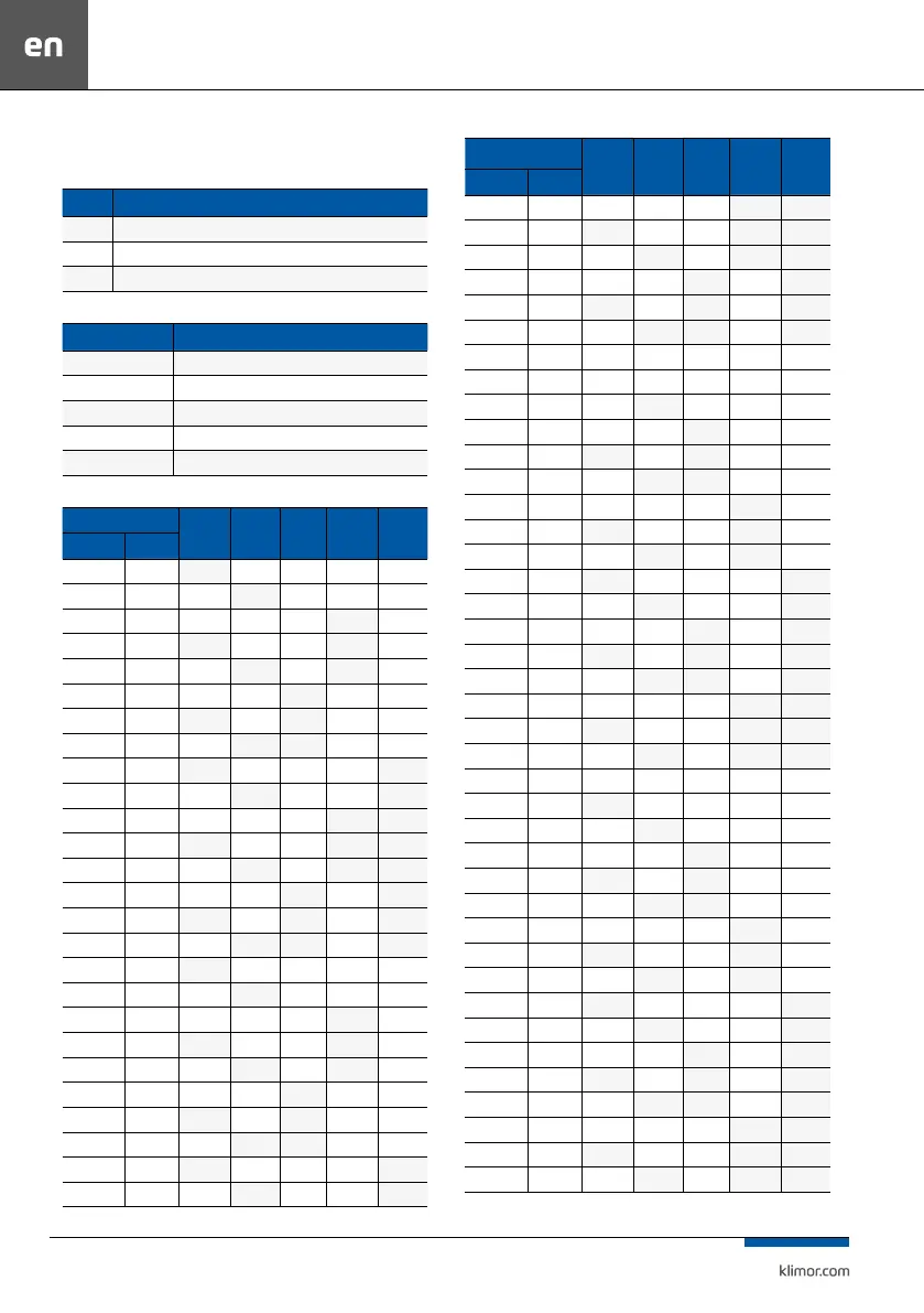 Table No. 7 Indication of functions in the table of codes and no. of control cabinet application