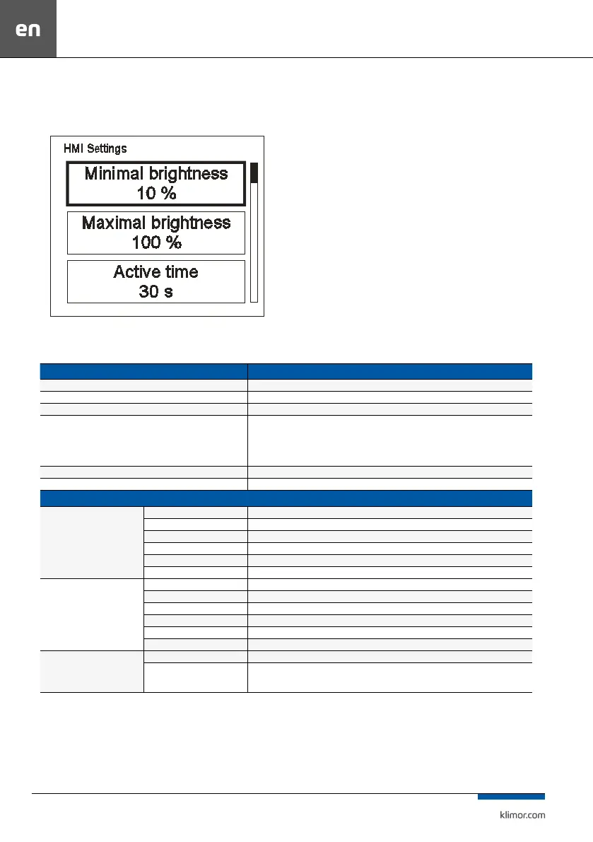 Minimal brightness (Minimal brightness) Brightness level when the HMI goes into operation mode