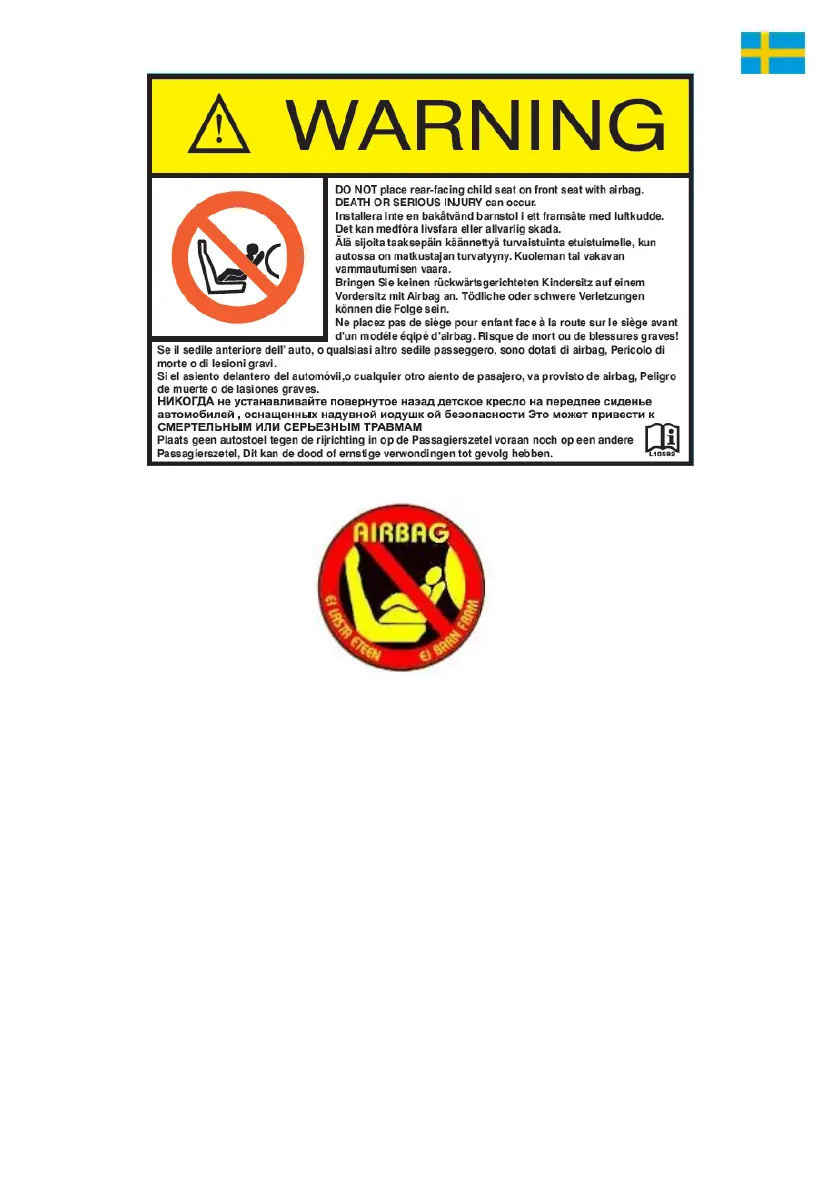 Om stolen placeras i framsätet måste krockkudden först kopplas bort fysiskt. Det vill