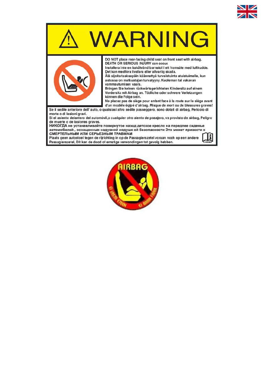 If the seat is placed in the front seat, the airbag must be physically deactivated, either by