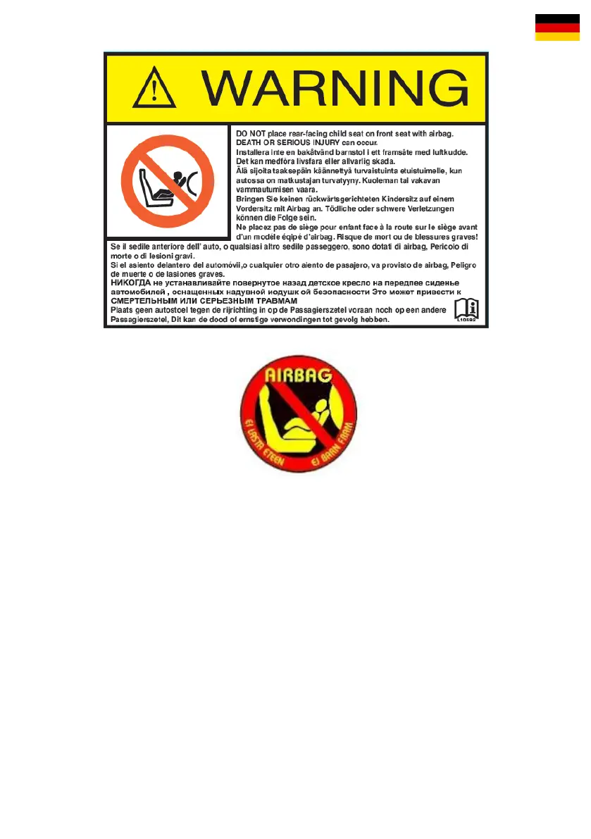 Wenn der Kindersitz auf dem Beifahrersitz montiert wird, muss der Beifahrerairbag deaktiviert