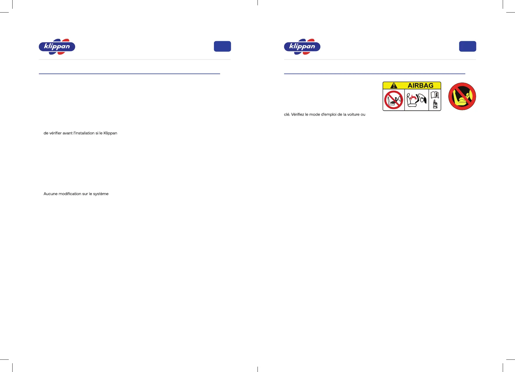 Si le siège est placé sur le siège avant, l’airbag