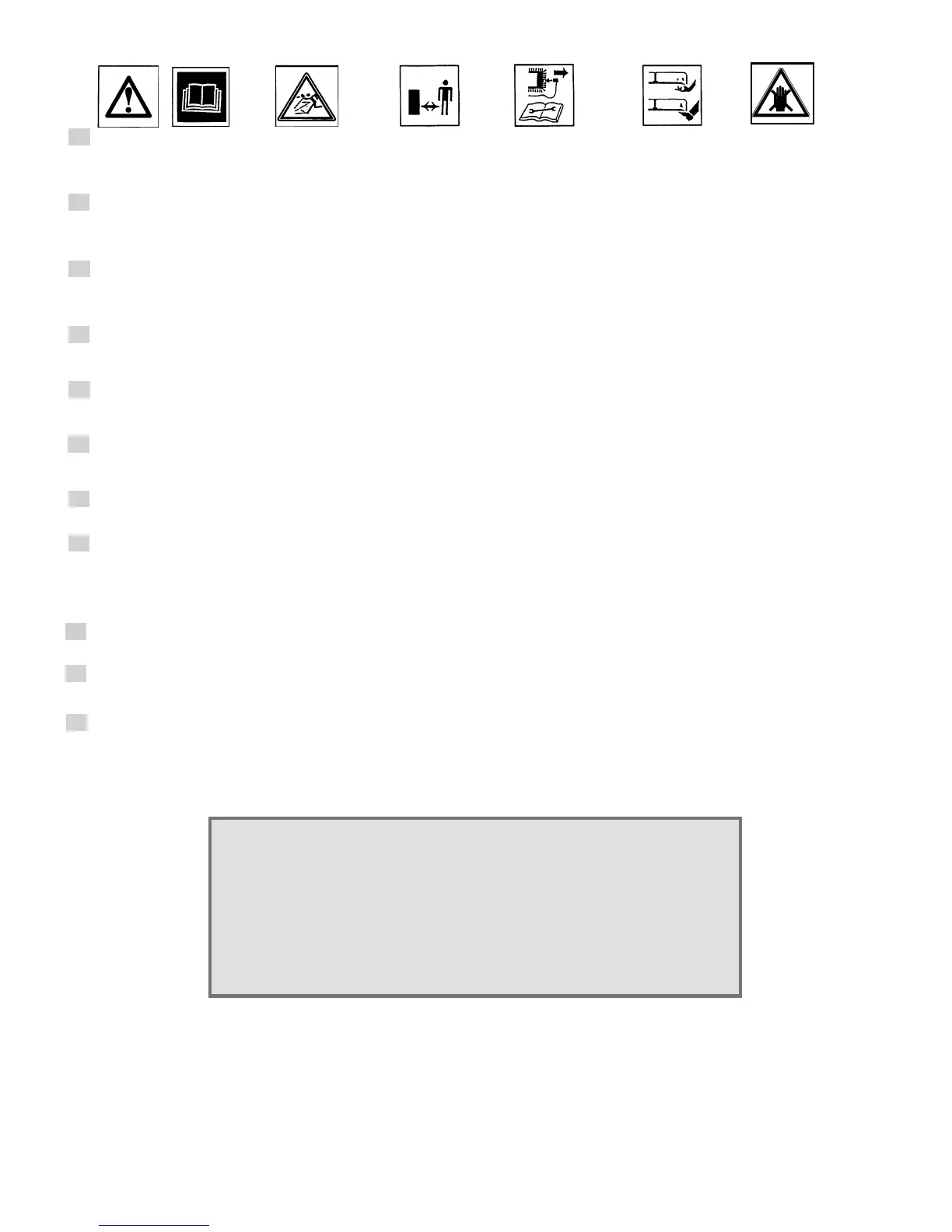 ADVARSEL! Les bruksanvis- Advarsel for gjenstander Hold tilskuere borte! Fjern ledningen fra Advarsel for den Stikk aldri hånden eller