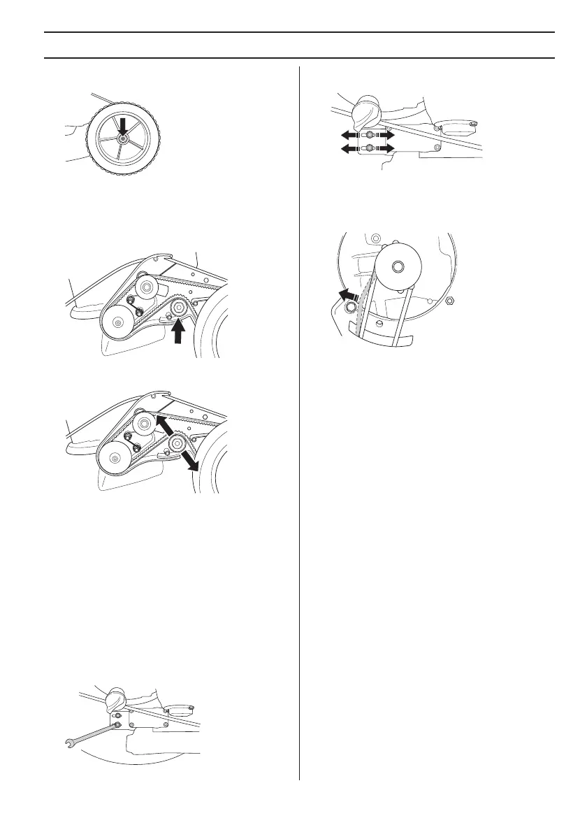 • Den Riemen einstellen, indem das Getriebe nach