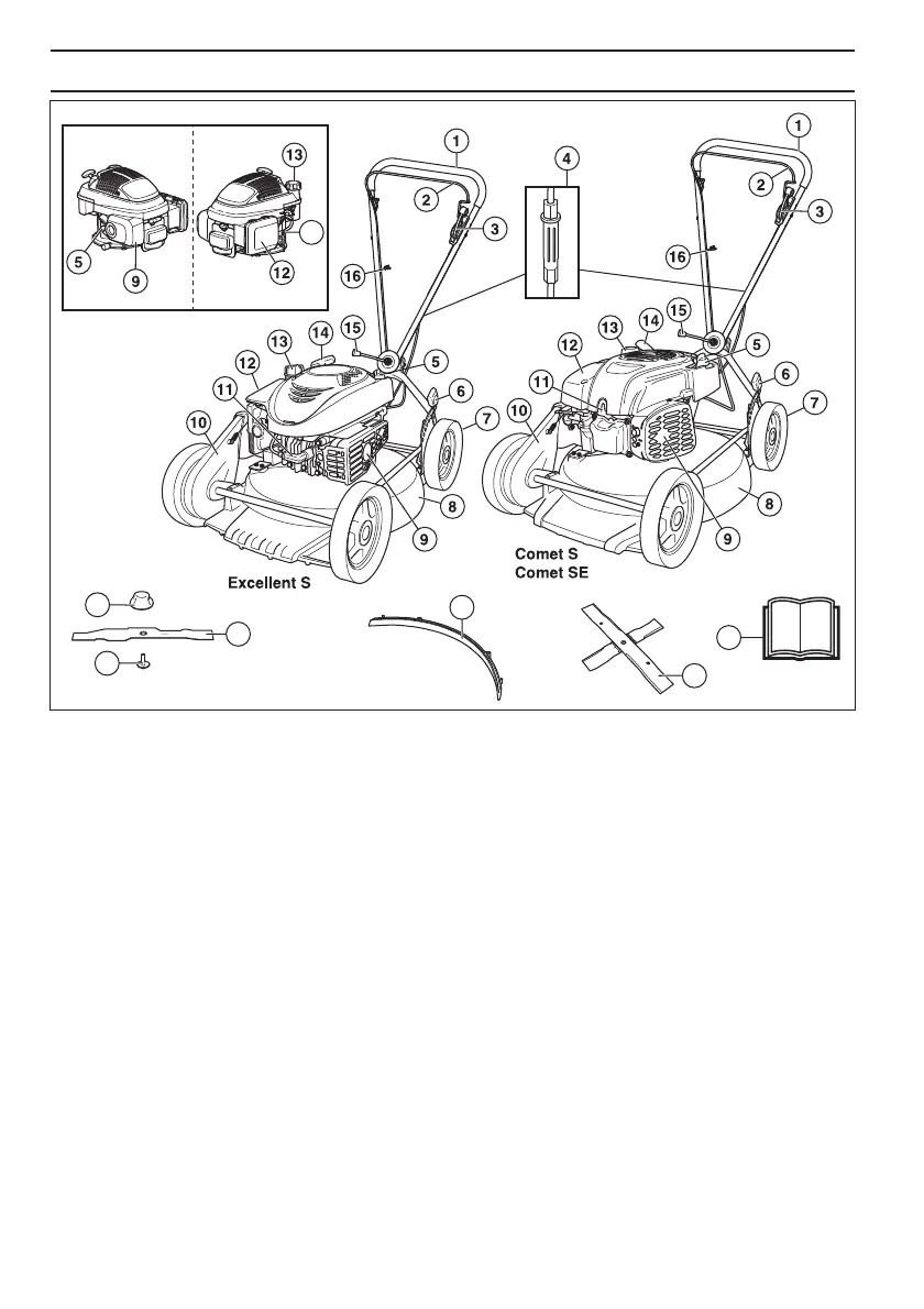Was ist was am Rasenmäher - Excellent S, Excellent S H, Comet S, Comet, SE, Comet S H?