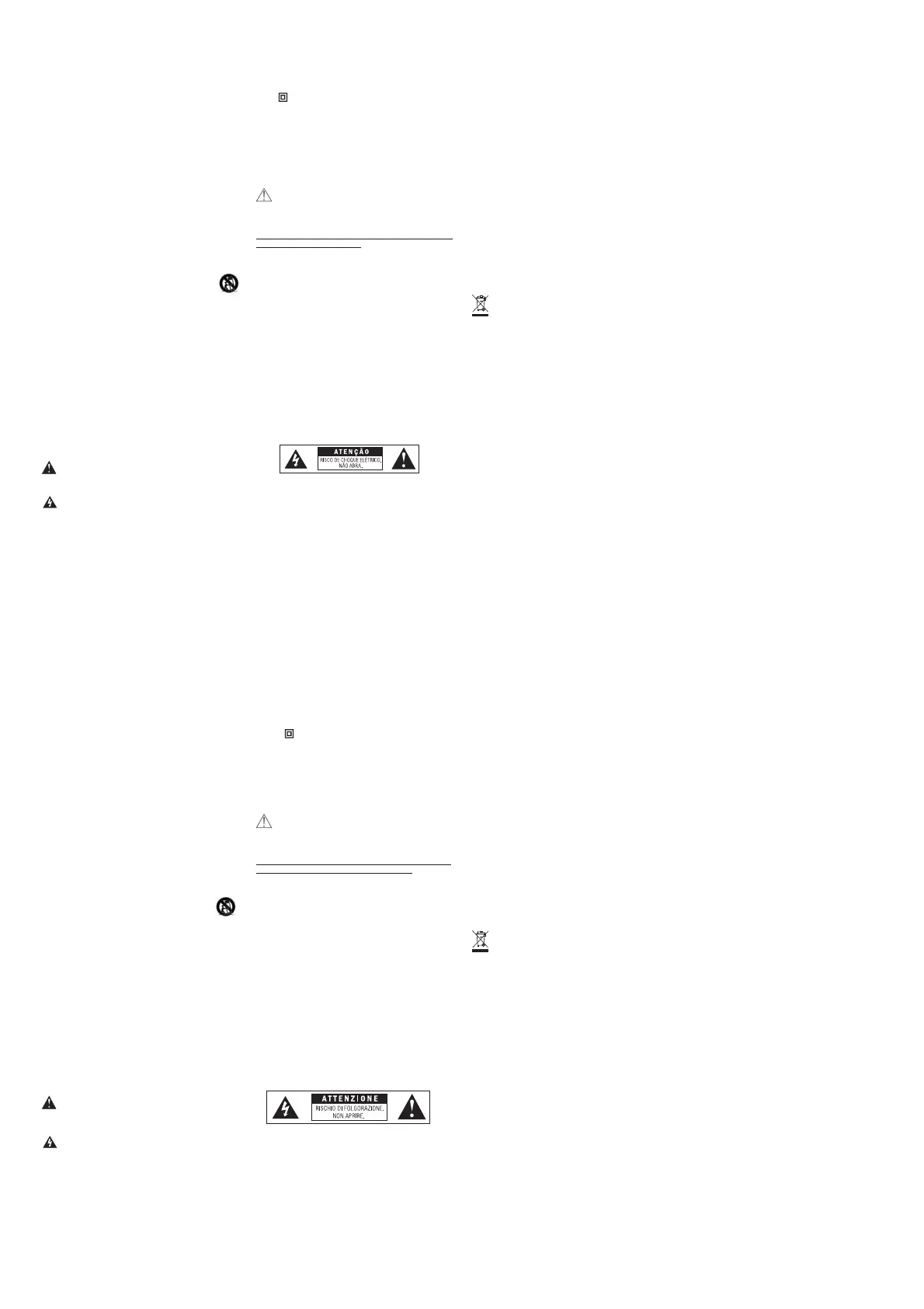 ATENÇÃO: Não abra! Risco de choque elétrico. As tensões presentes neste equipamento